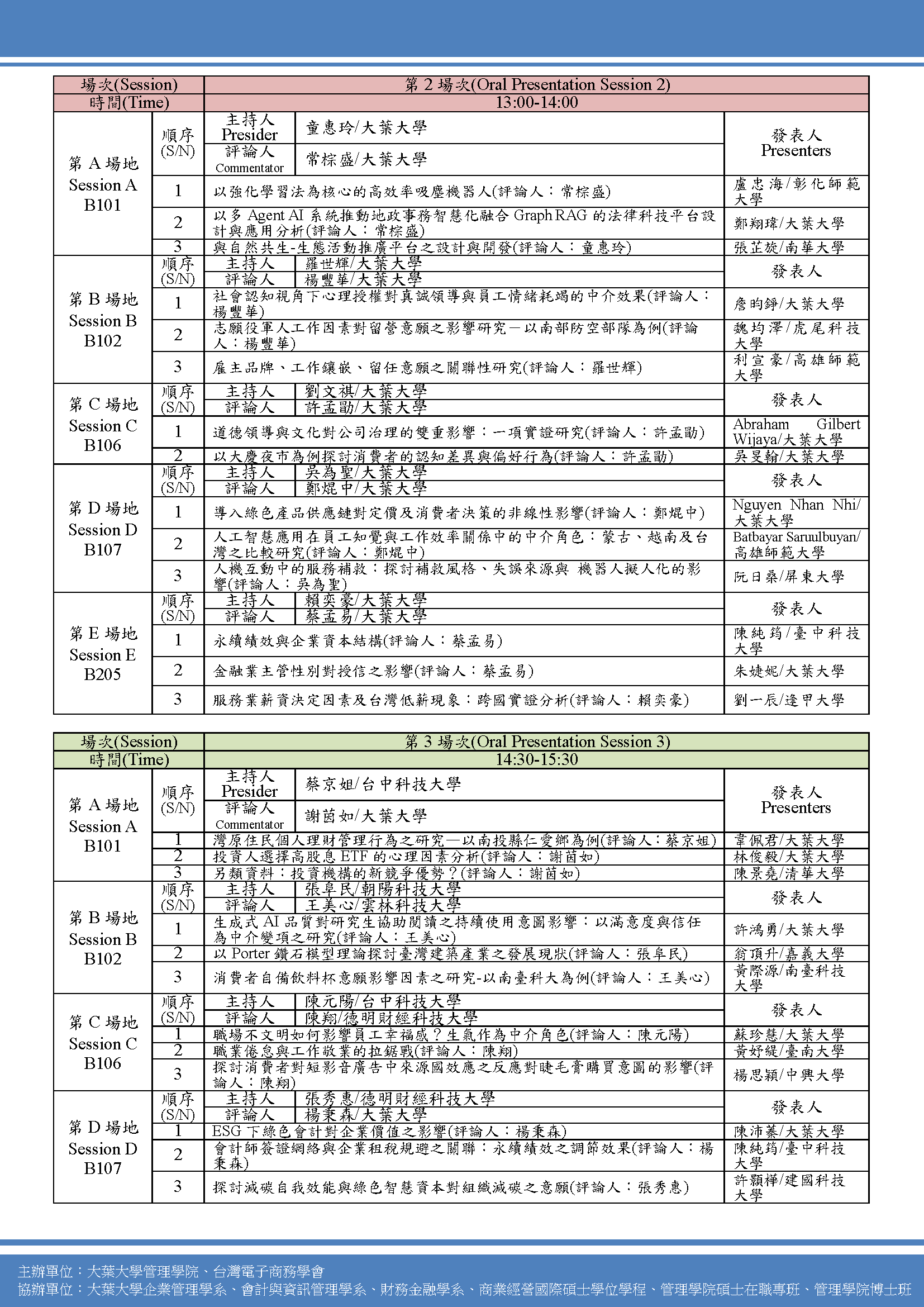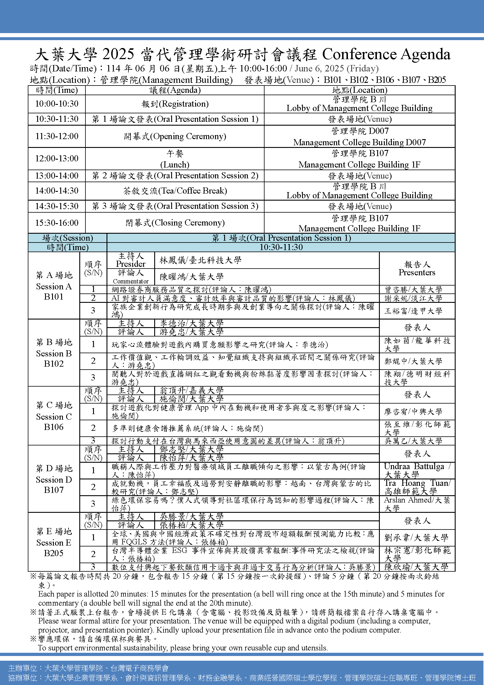 舉辦地點:大葉大學管理學院大樓
